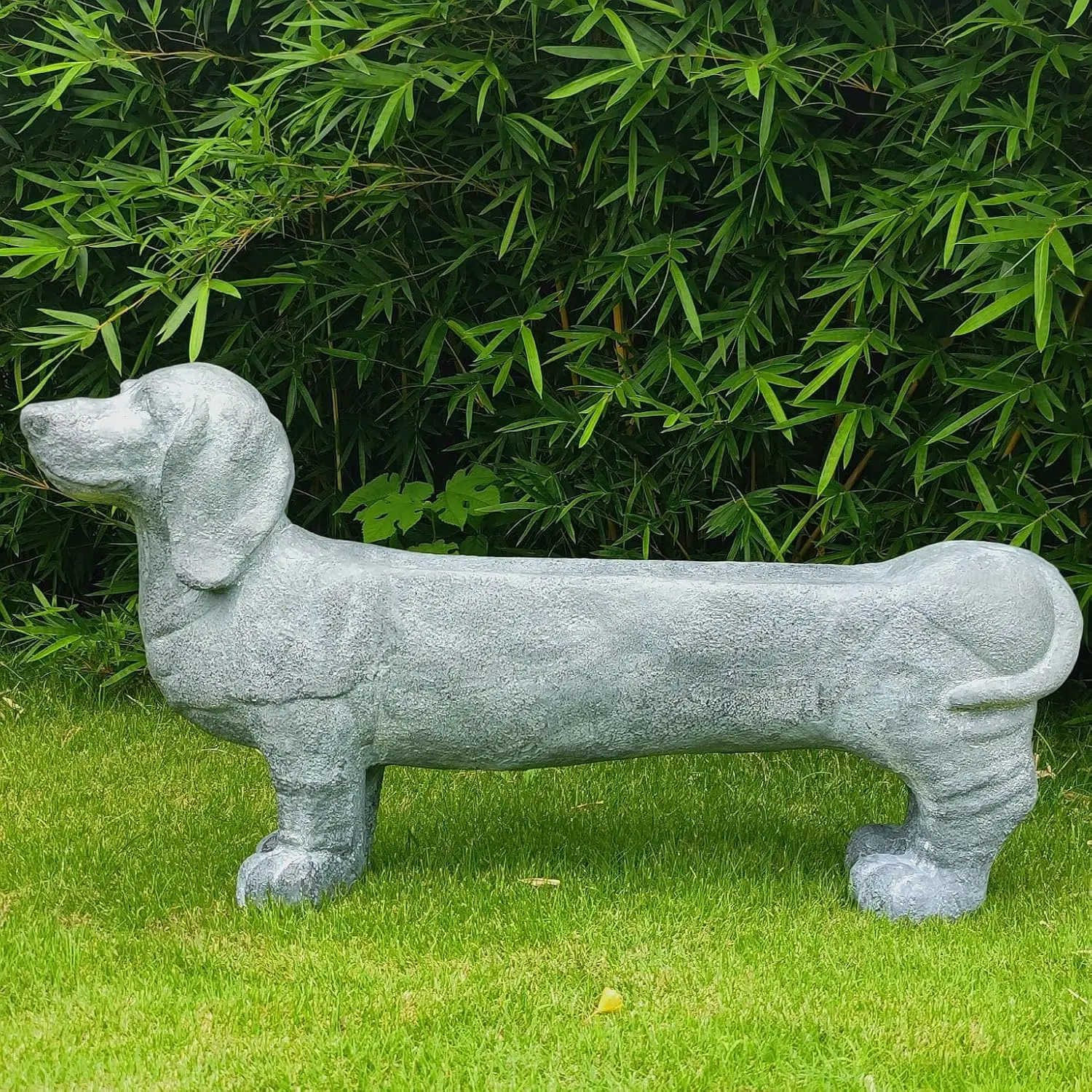 - 3.Perfect for Garden: Its lifelike Dachshund dog statue sculpture shape adds a touch of whimsy and playfulness to your garden, making it a favorite spot for relaxation and conversation. Whether you want to sit and admire your blooming flowers or enjoy a cup of tea, this Dachshund statue sculpture dog-shaped bench stool provides a comfortable and stylish seating option.