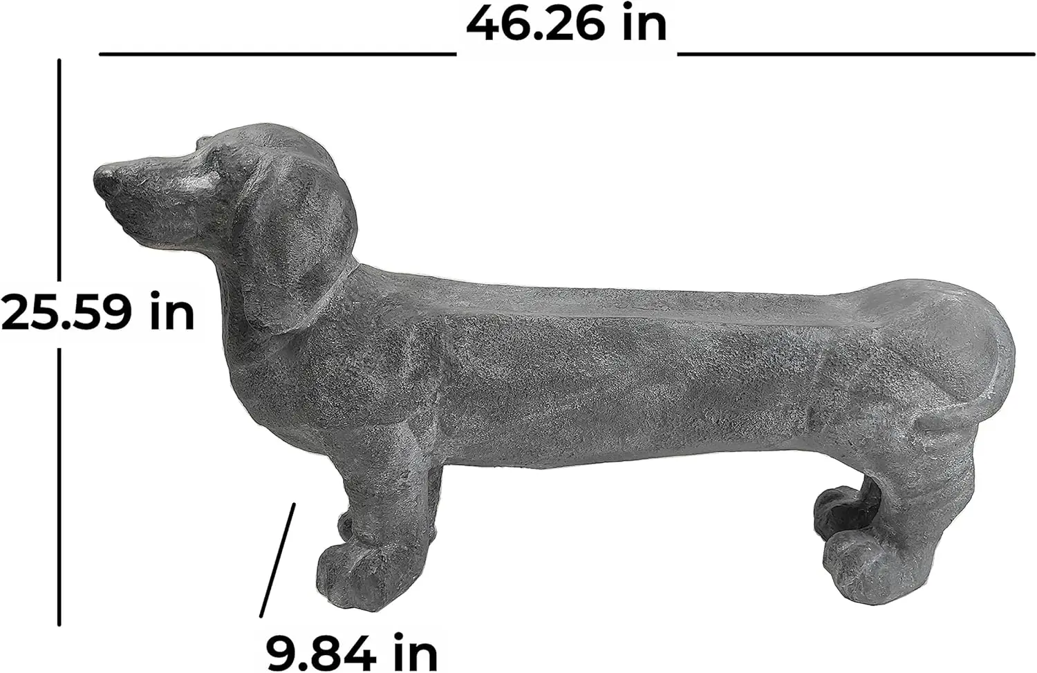 - 5.Dimension:This Dachshund statue sculpture dog shaped bench is 46.2” L x 9.8”W x 25.5”H,which can seat 2 adults . It comes ready to use straight out of the box. No assembly required .
